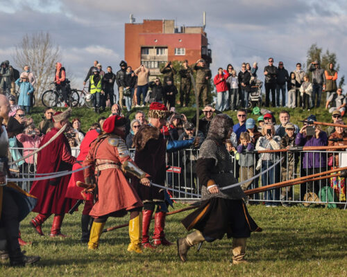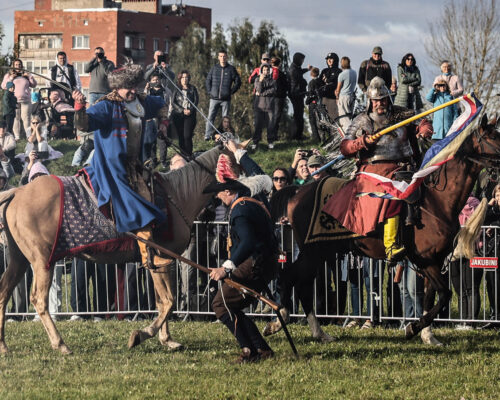 Kulminacyjnym punktem obchodów była spektakularna rekonstrukcja bitwy. Pokaz husarii w pełnym galopie, z kilkunastoma końmi, zapierał dech w piersiach. Szarże, pojedynki konne, dynamiczne harce i słynna scena udawanej ucieczki zakończonej frontalnym atakiem husarii między szwedzkimi pikinierami – wszystko to oddało dramatyzm i geniusz taktyczny historycznego starcia. Widzowie mogli usłyszeć przemowę hetmana Chodkiewicza, który zagrzewał wojsko słowami: „Policzymy ich, jak pobijemy!”